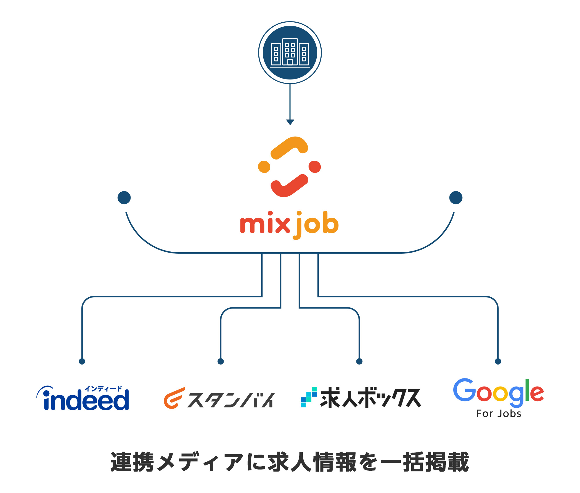一度登録した求人情報を、複数の求人メディアへ配信。